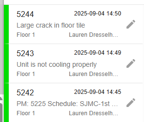 Service Level Agreement thresholds can be set up to flag work orders with a green, yellow, or red tag depending on where they fall in the thresholds.