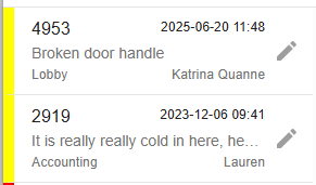 - A work order with an age between "Threshold 1" and "Threshold 2" will be flagged with a yellow bar